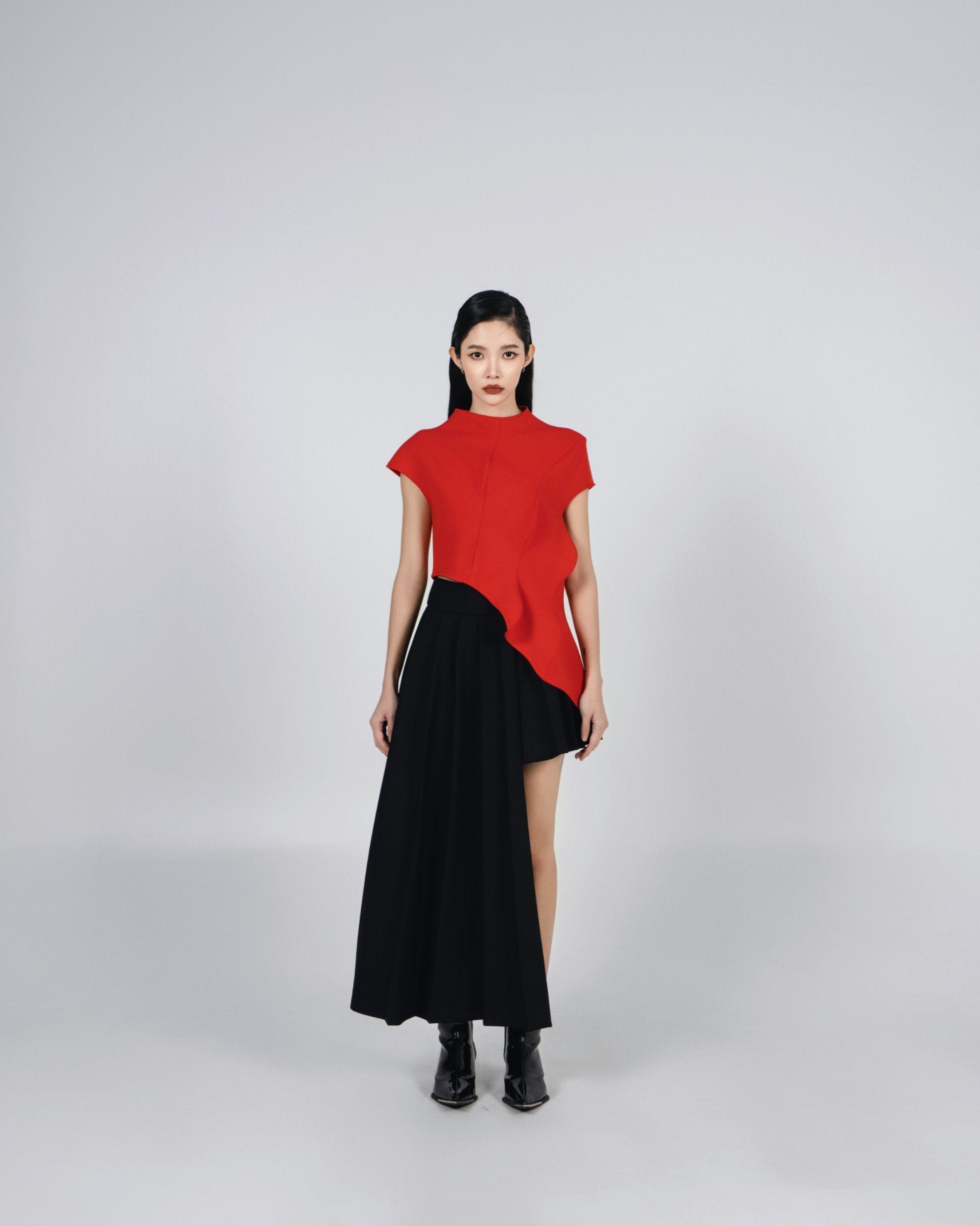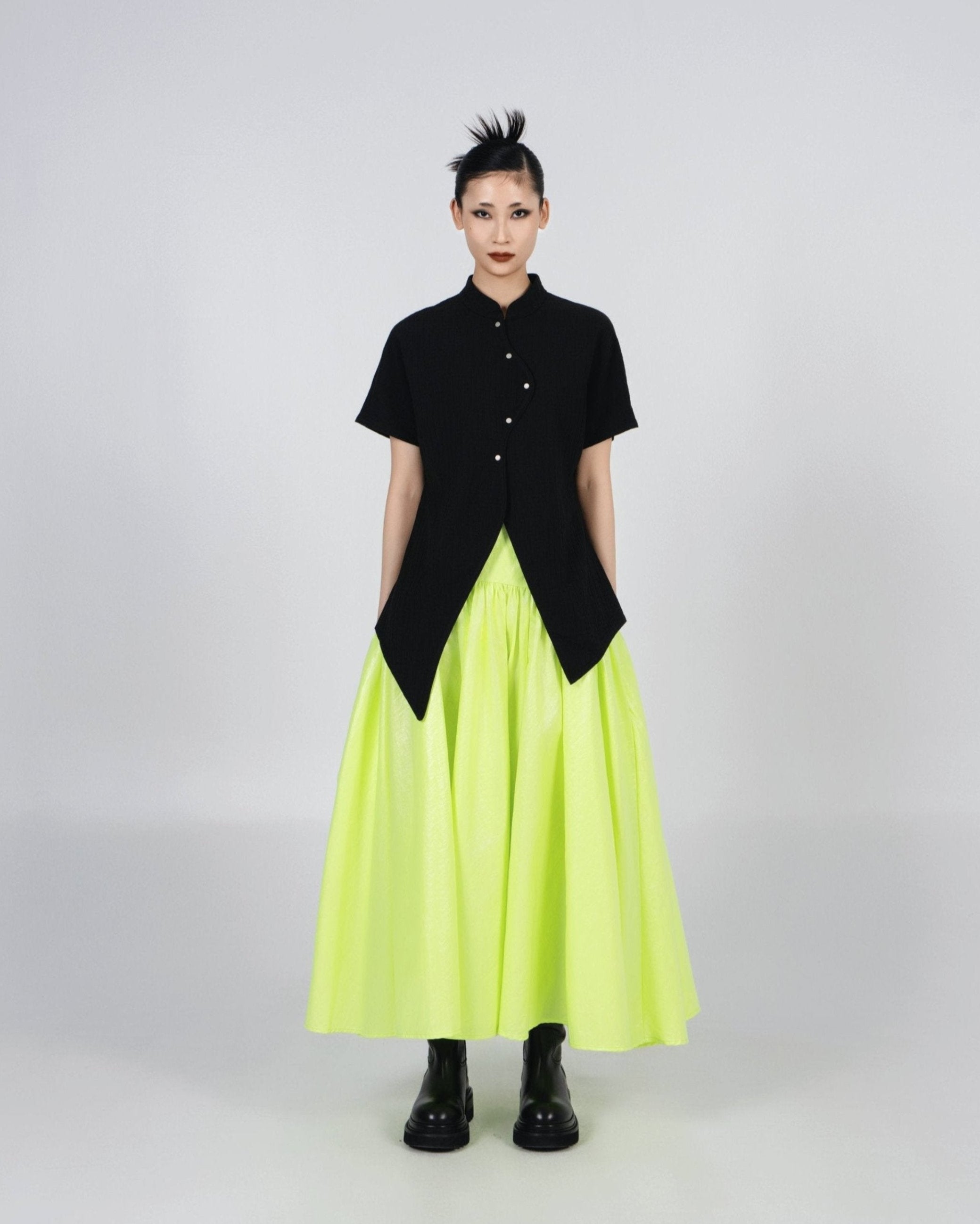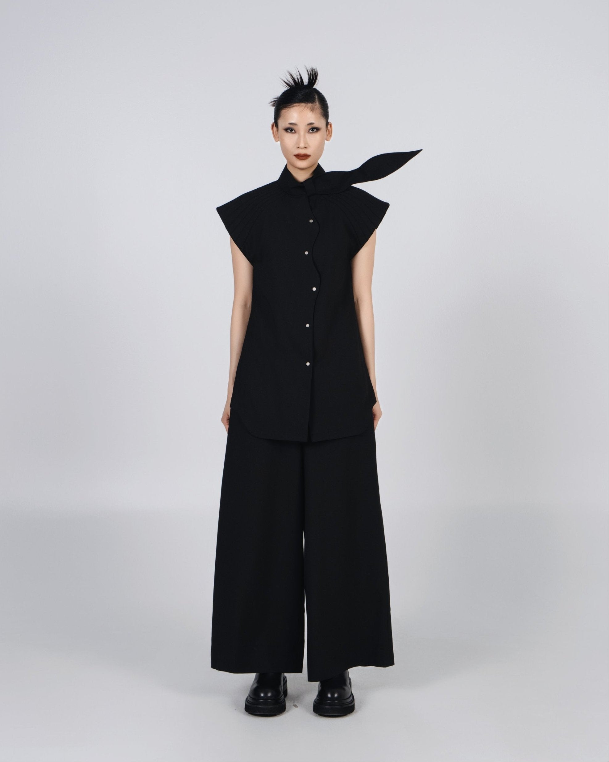 A-JANE CNY Tangshi Mandarin Collar Wavy Relaxed Shirt
