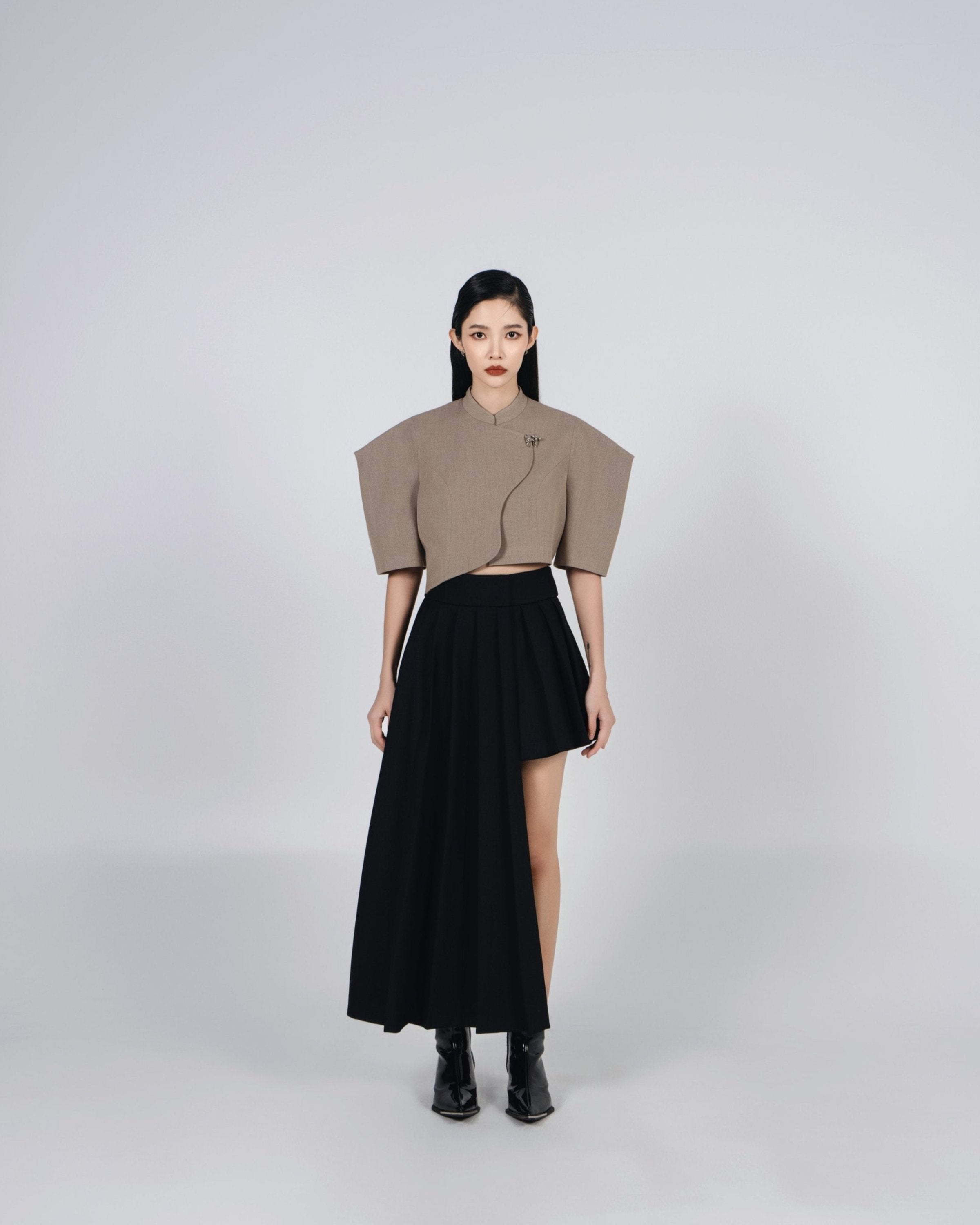 A-JANE Shani Chinese Collar Metal Clasp Hollow Top