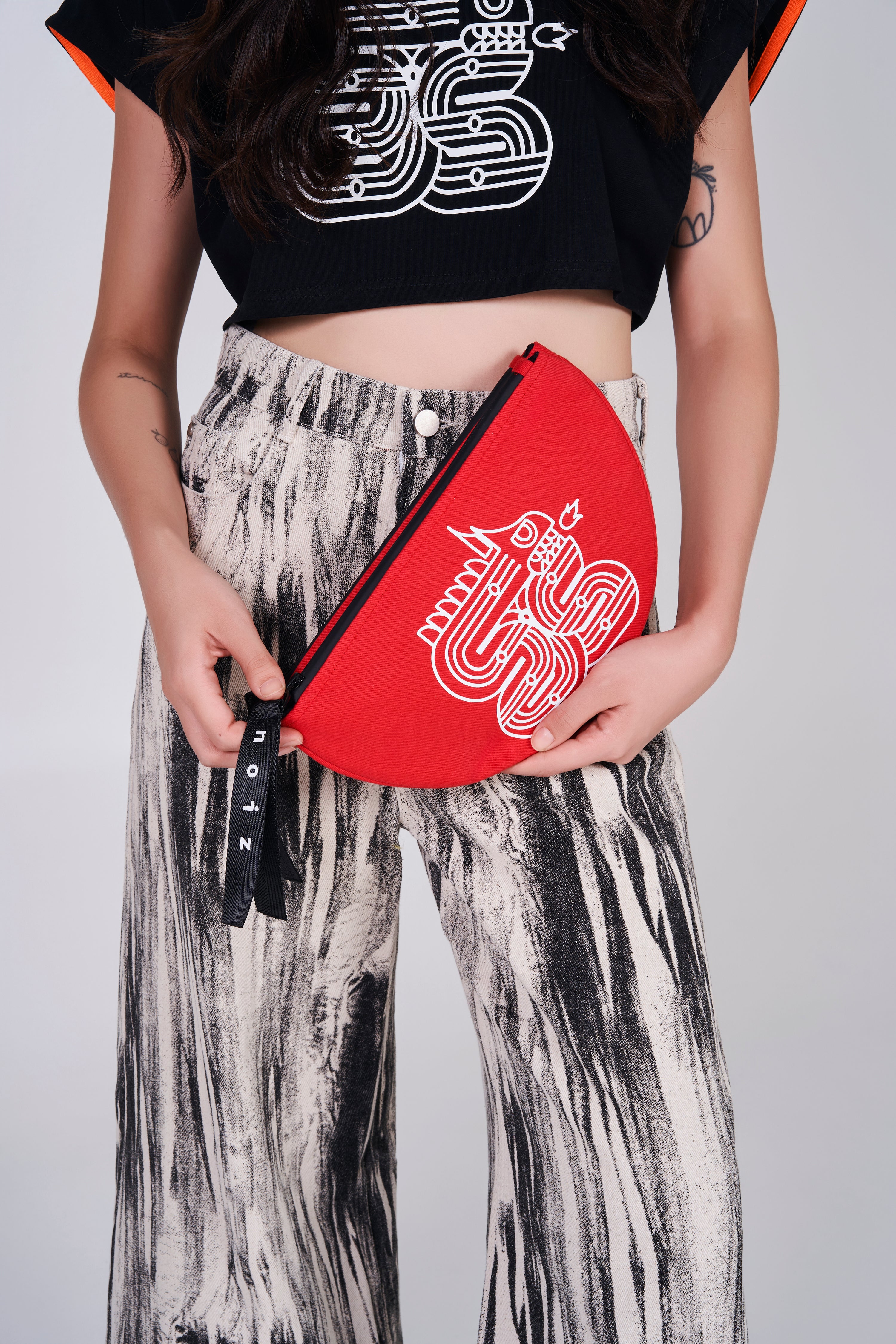 NOIZ N4LP3 Logo Distorted Print Wide-Leg Denim Pants