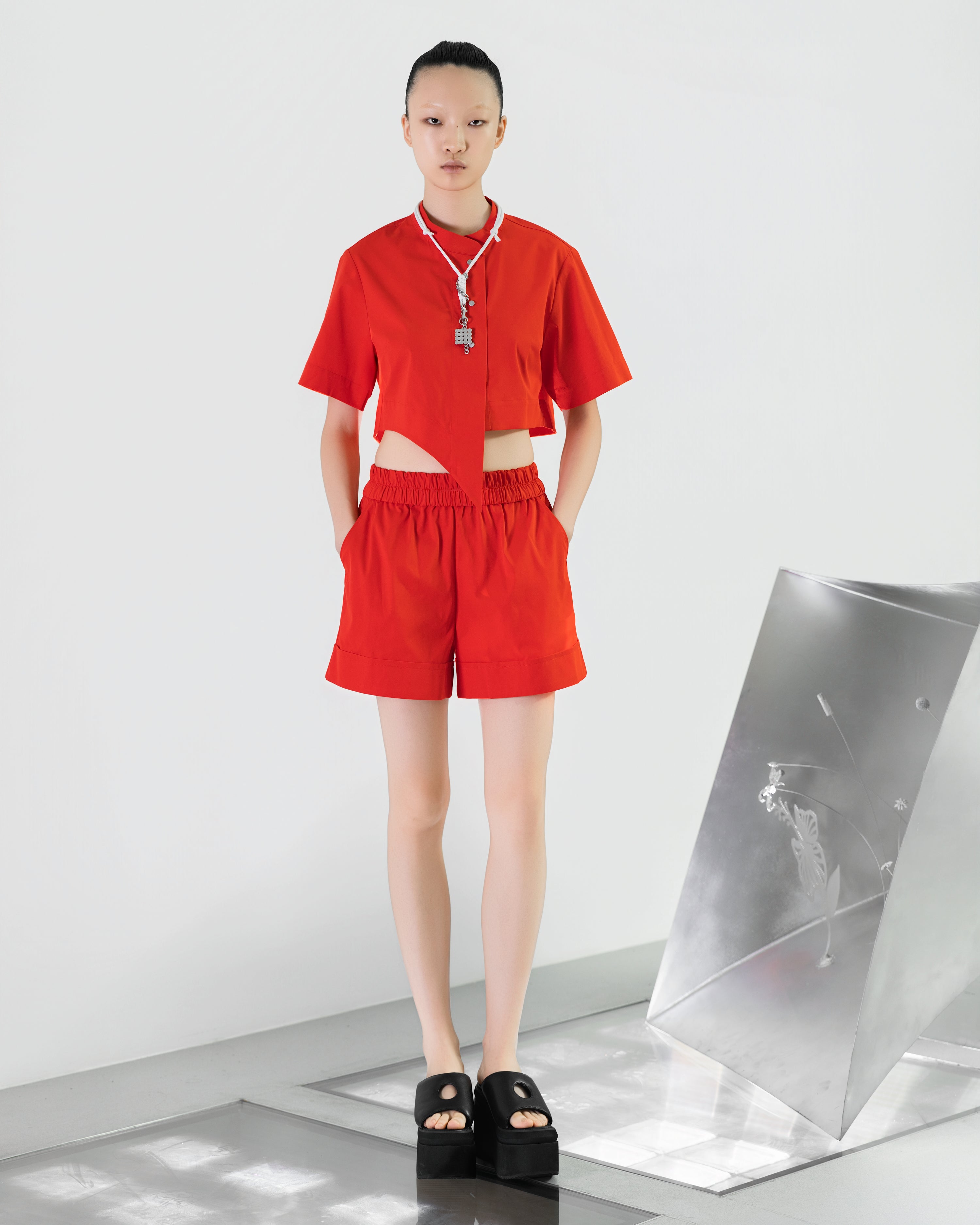 NOIZ N8TP1 Asymmetrical Diagonal-Cropped Stand-Collar Top