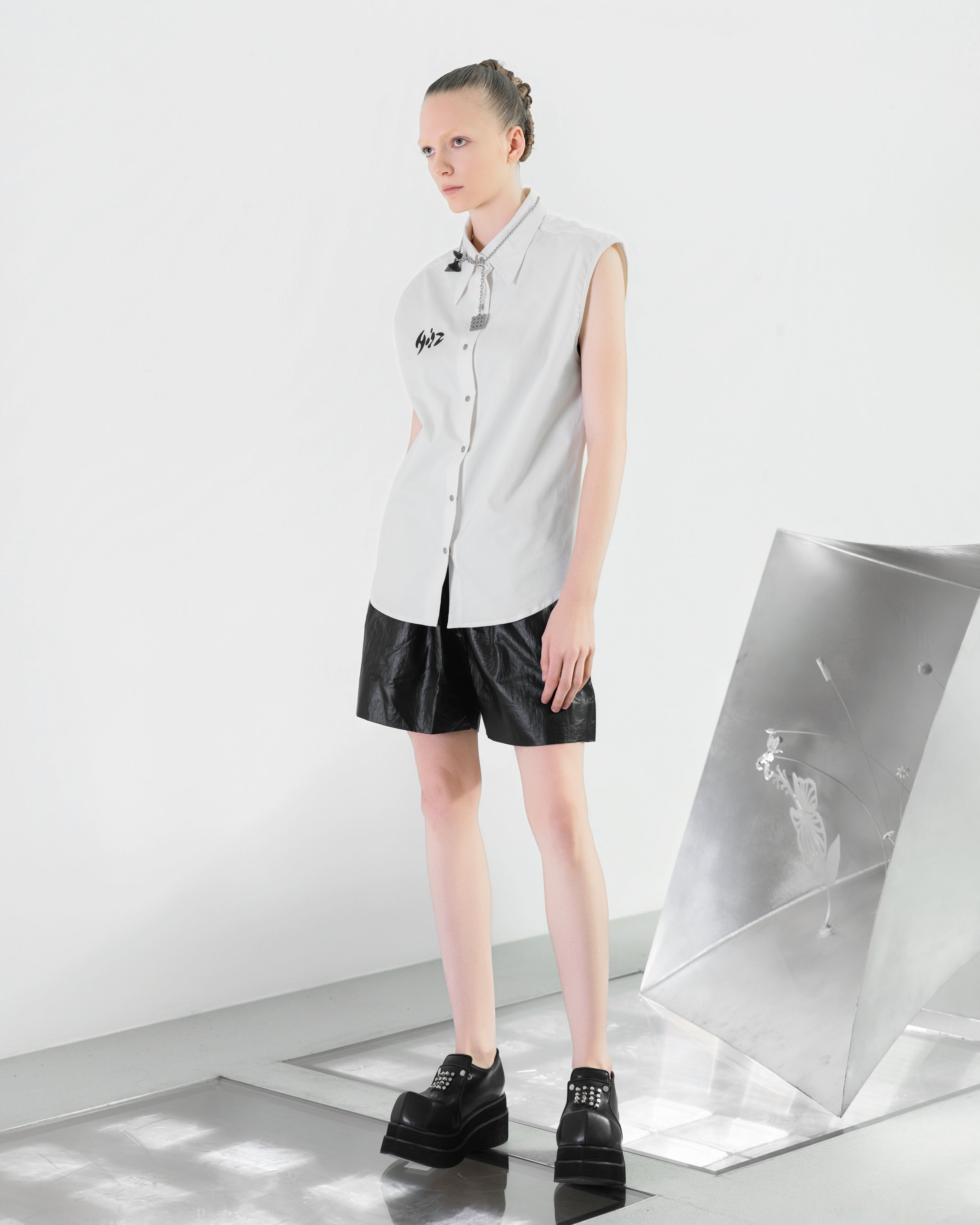 NOIZ N7TP6 Sleeveless Logo Collared Shirt