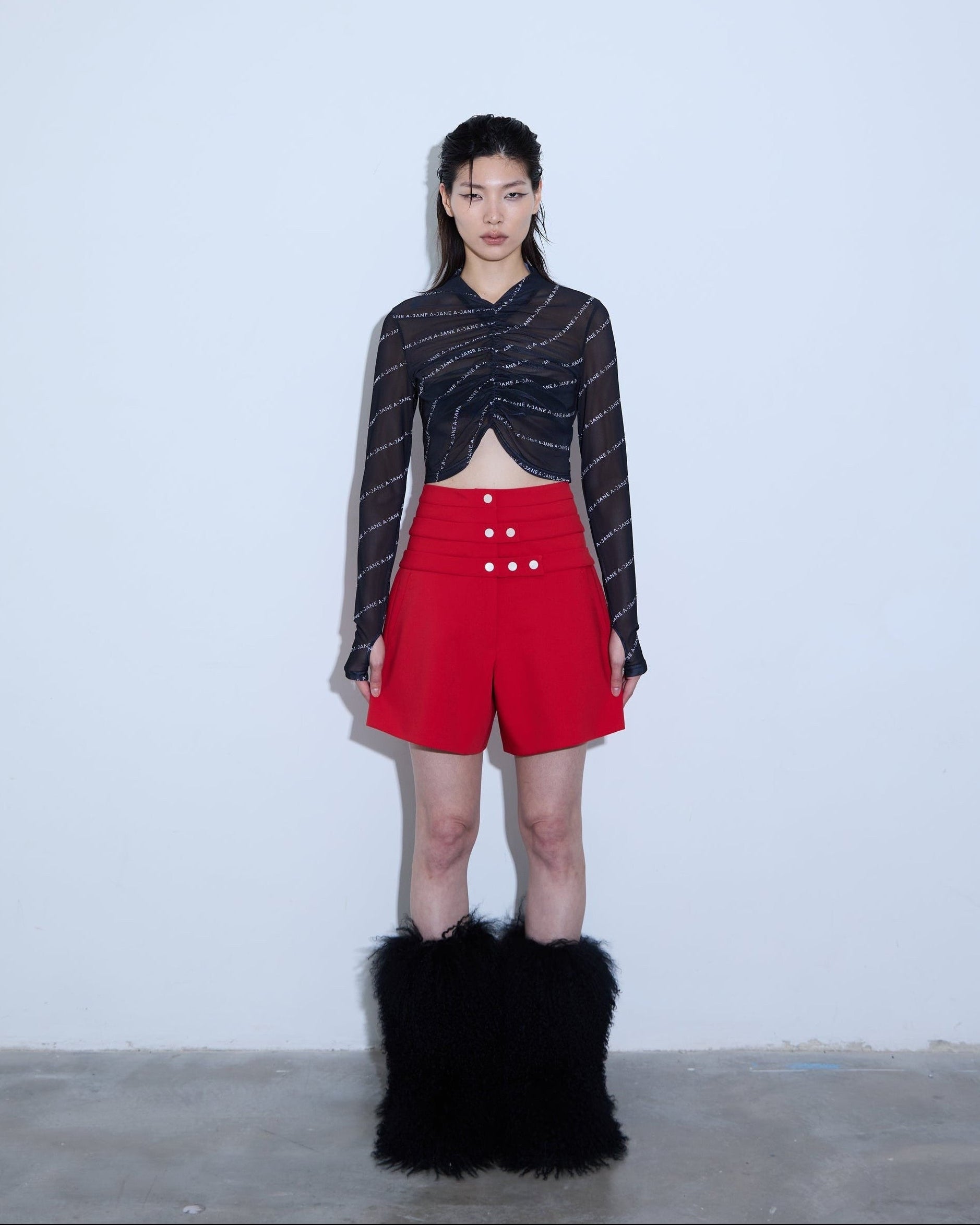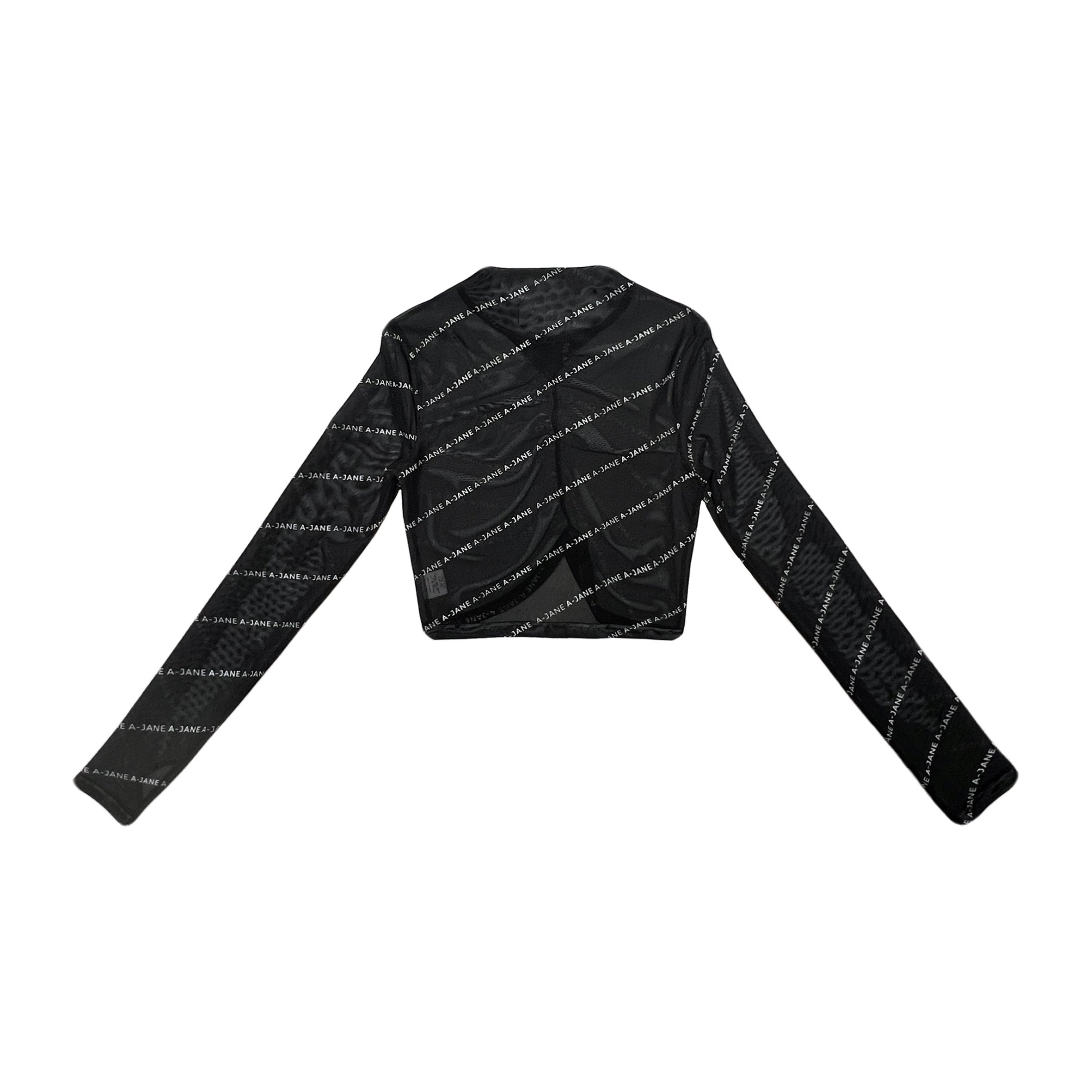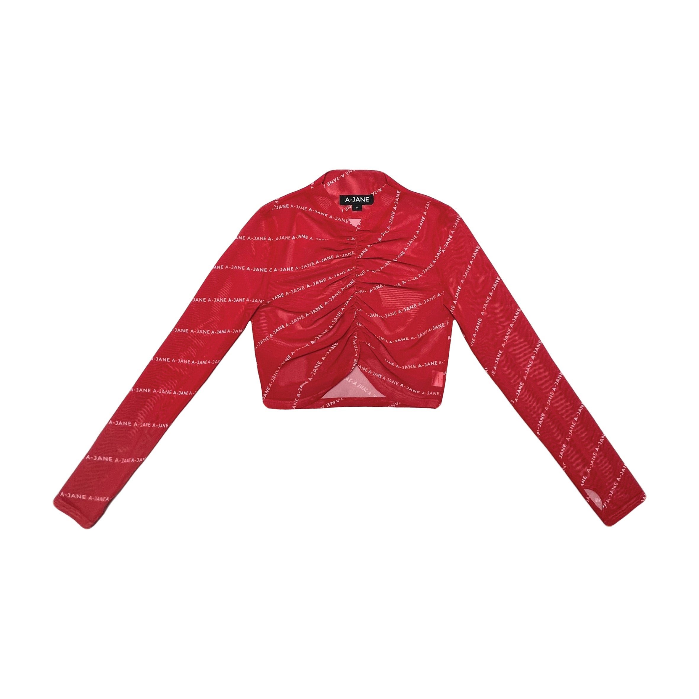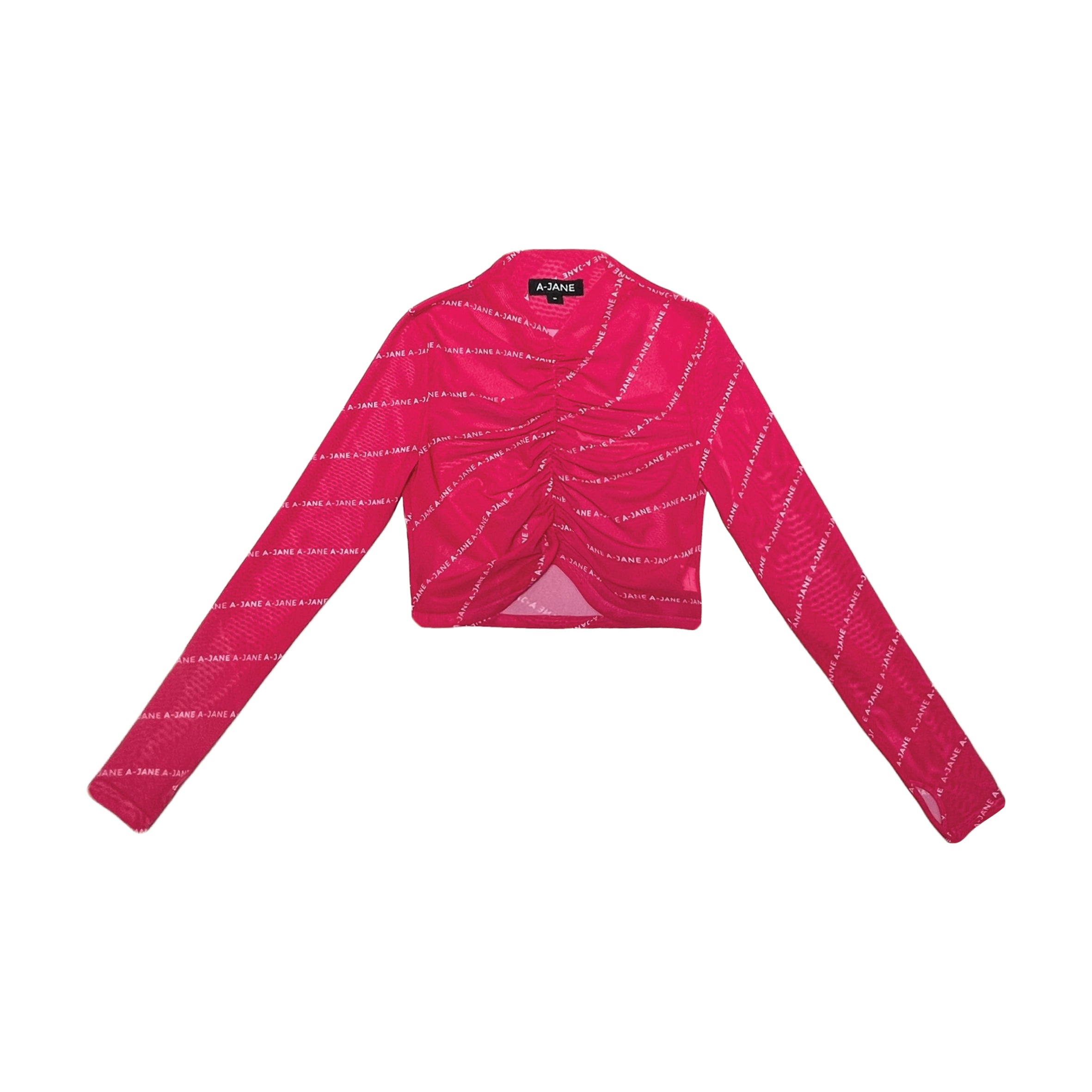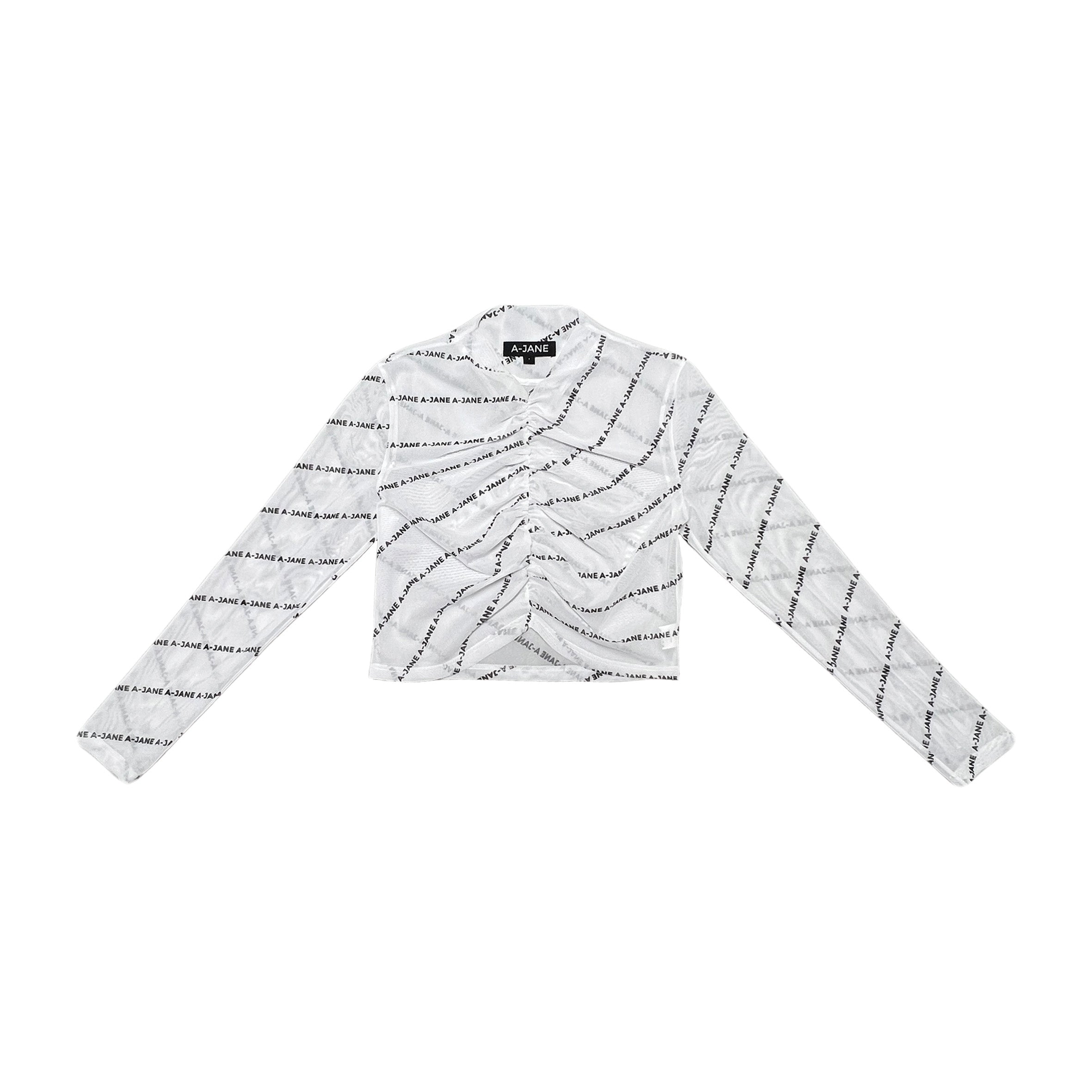 A-JANE's Digi Gathered Logo Long Sleeves Crop Top features the iconic A-JANE monogram printed on a ruched translucent polyester fabric. It's the perfect layering piece to elevate an outfit instantly.