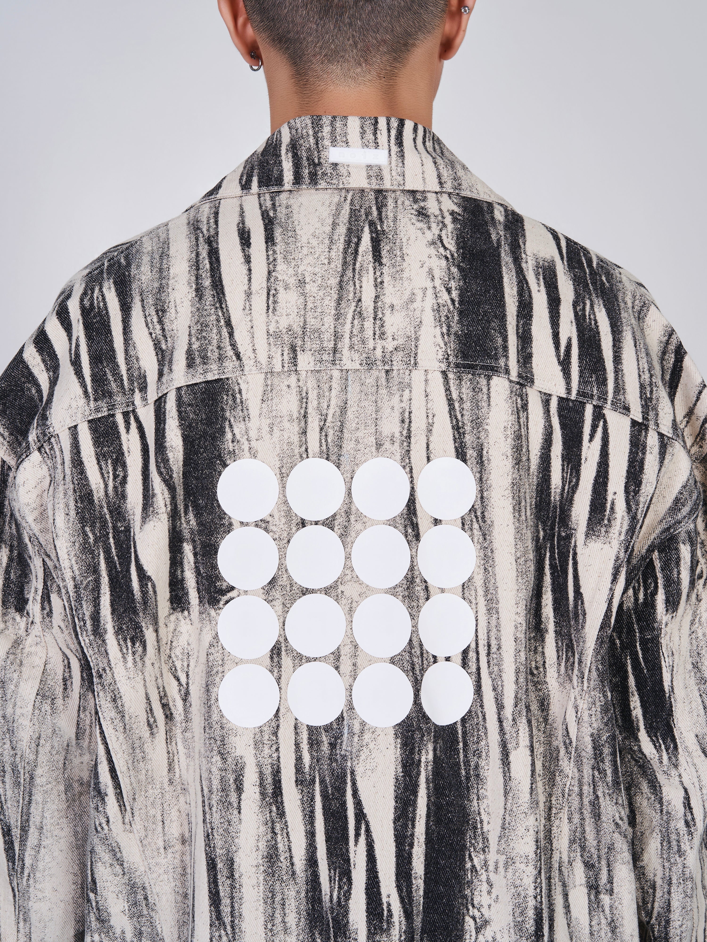 NOIZ N4JK2 Oversized Logo Distorted Print Denim Jacket