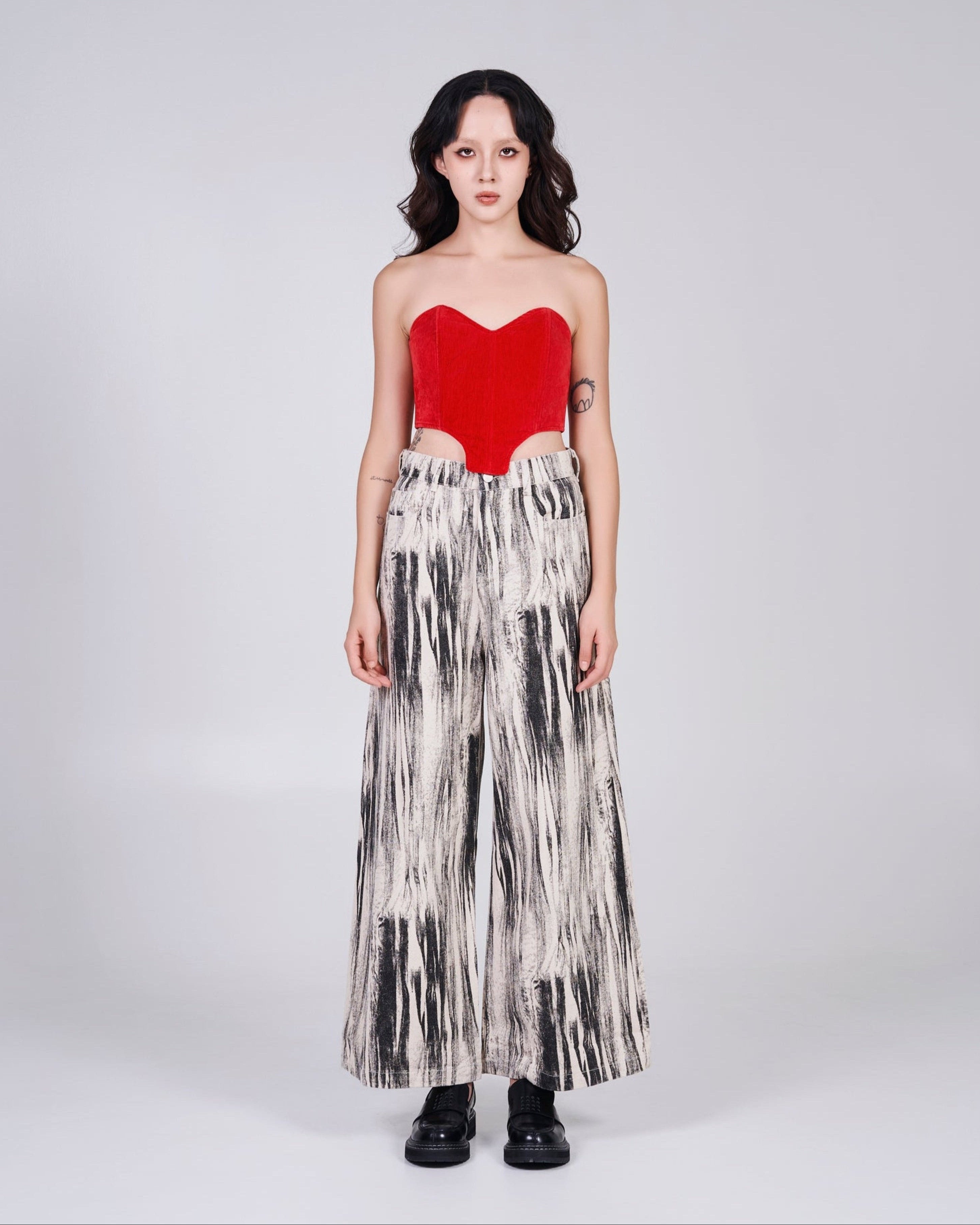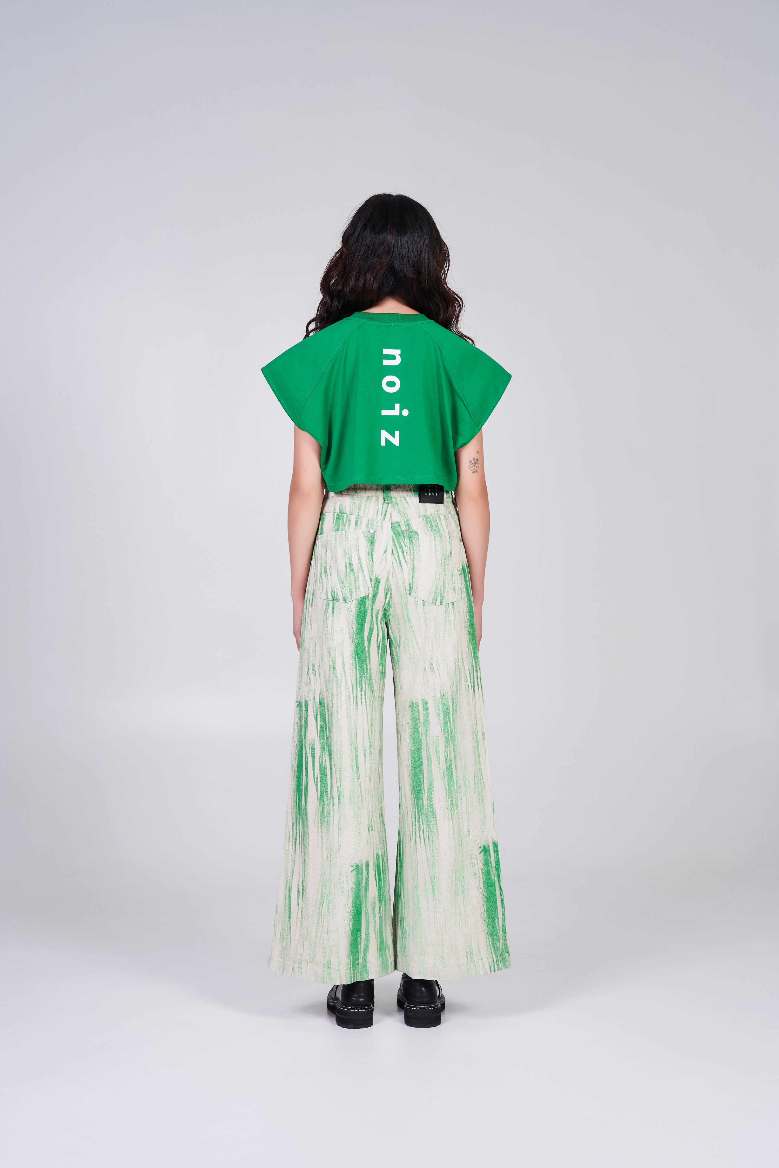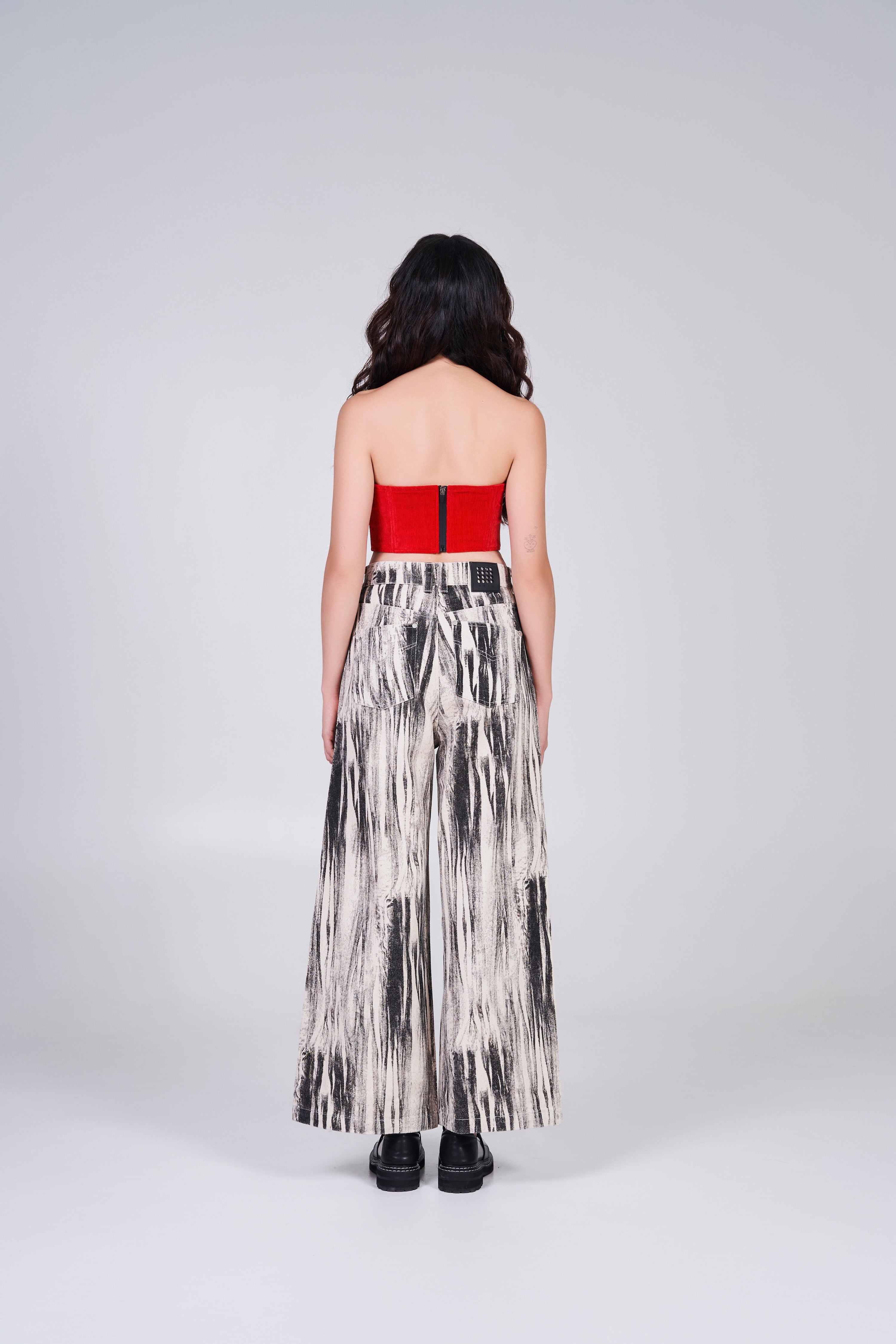 NOIZ N4LP3 Logo Distorted Print Wide-Leg Denim Pants