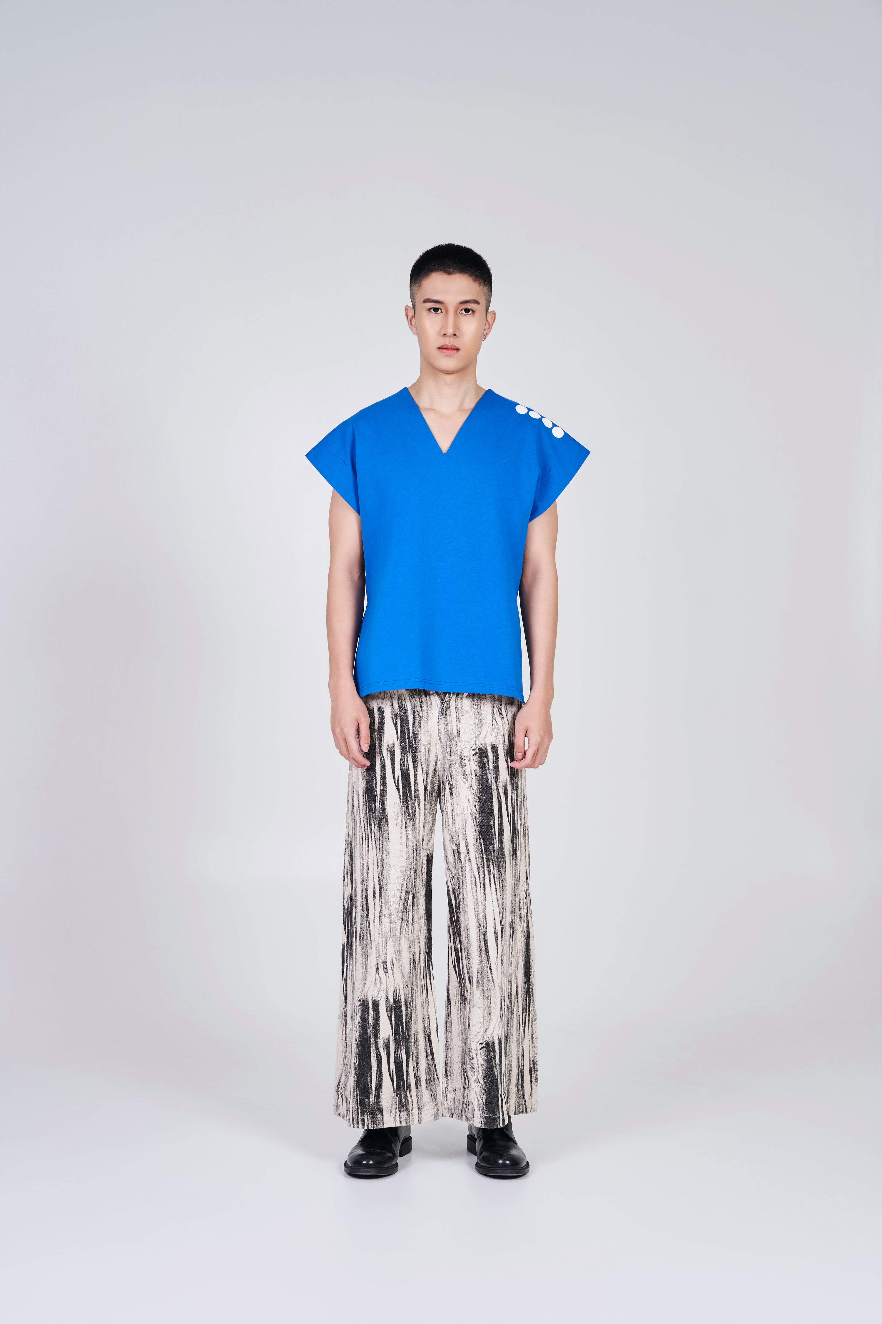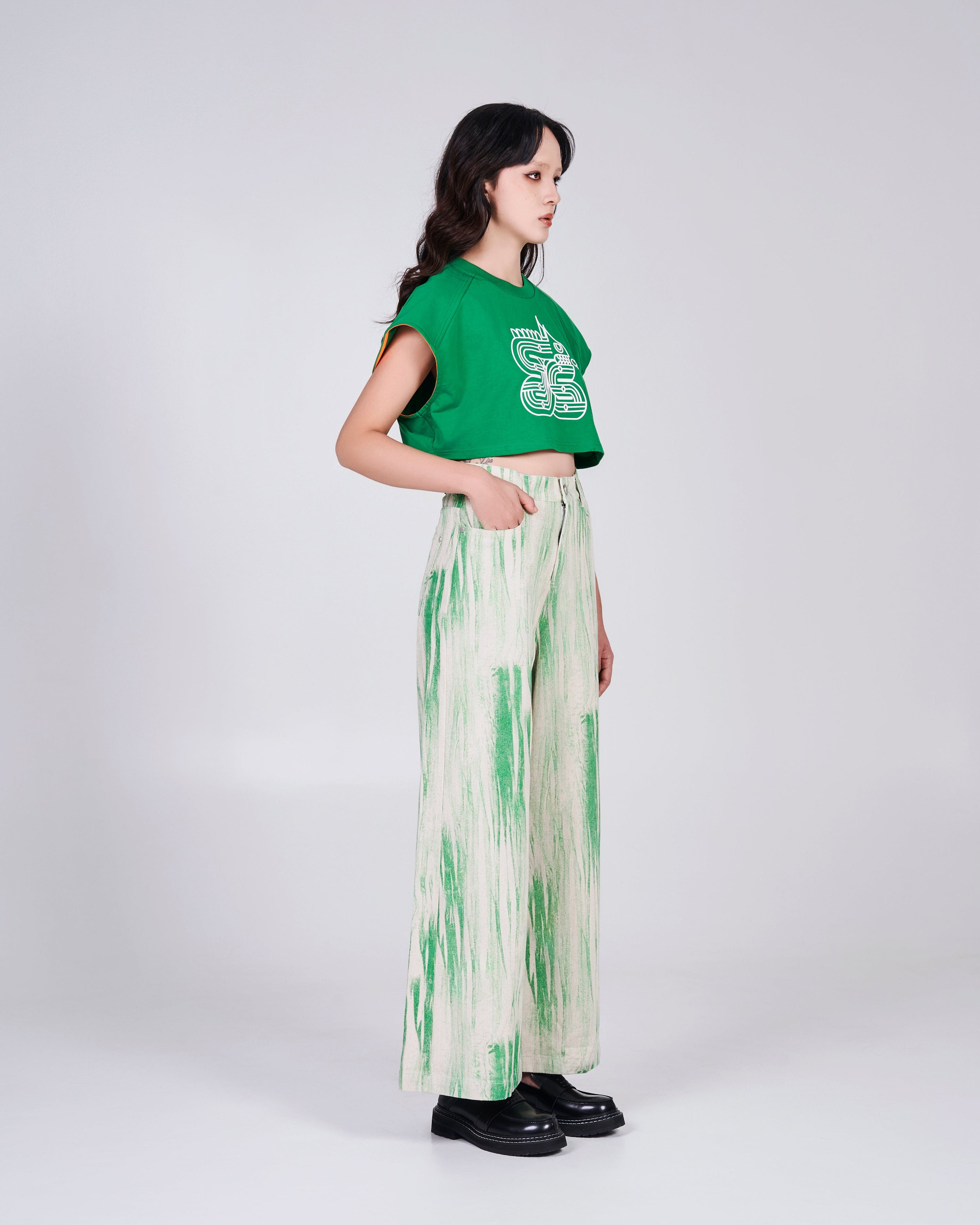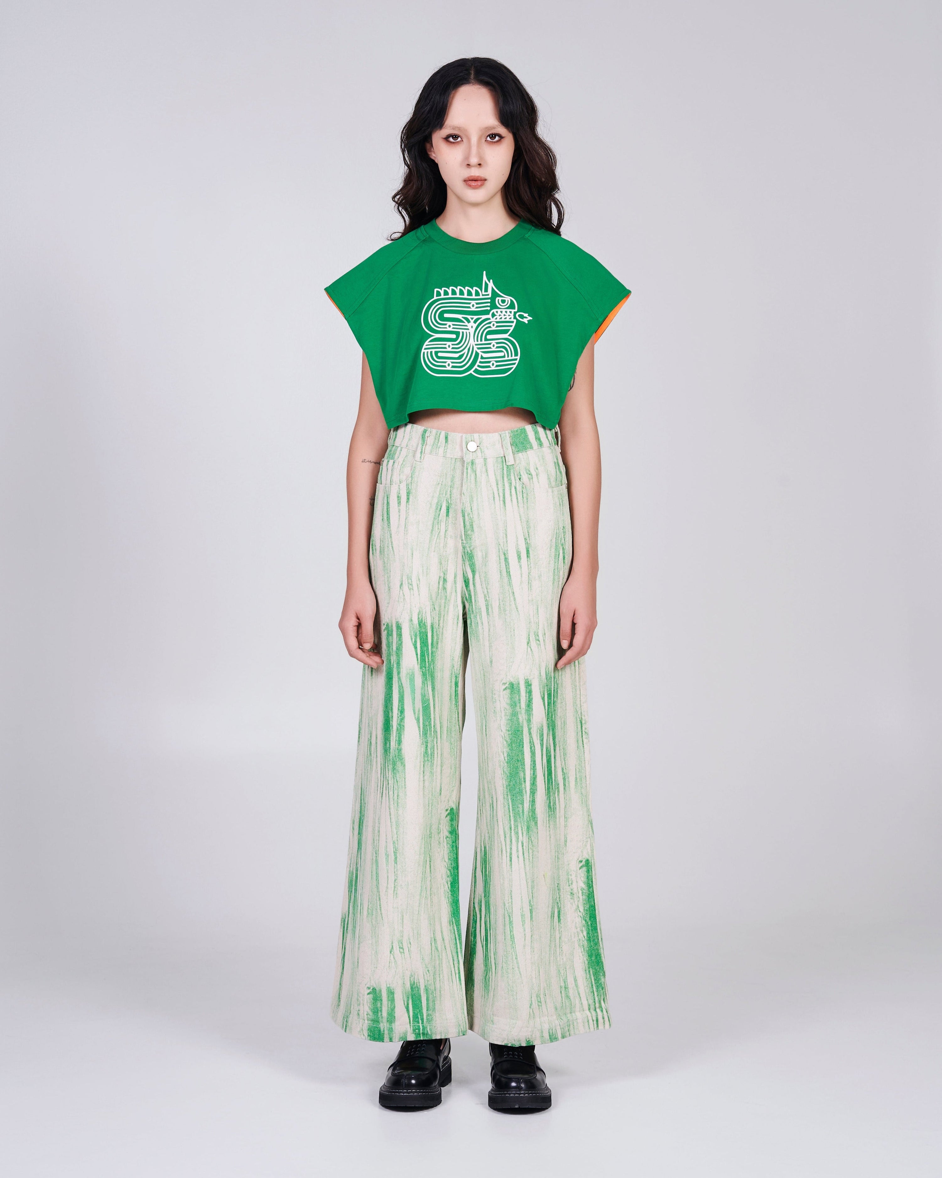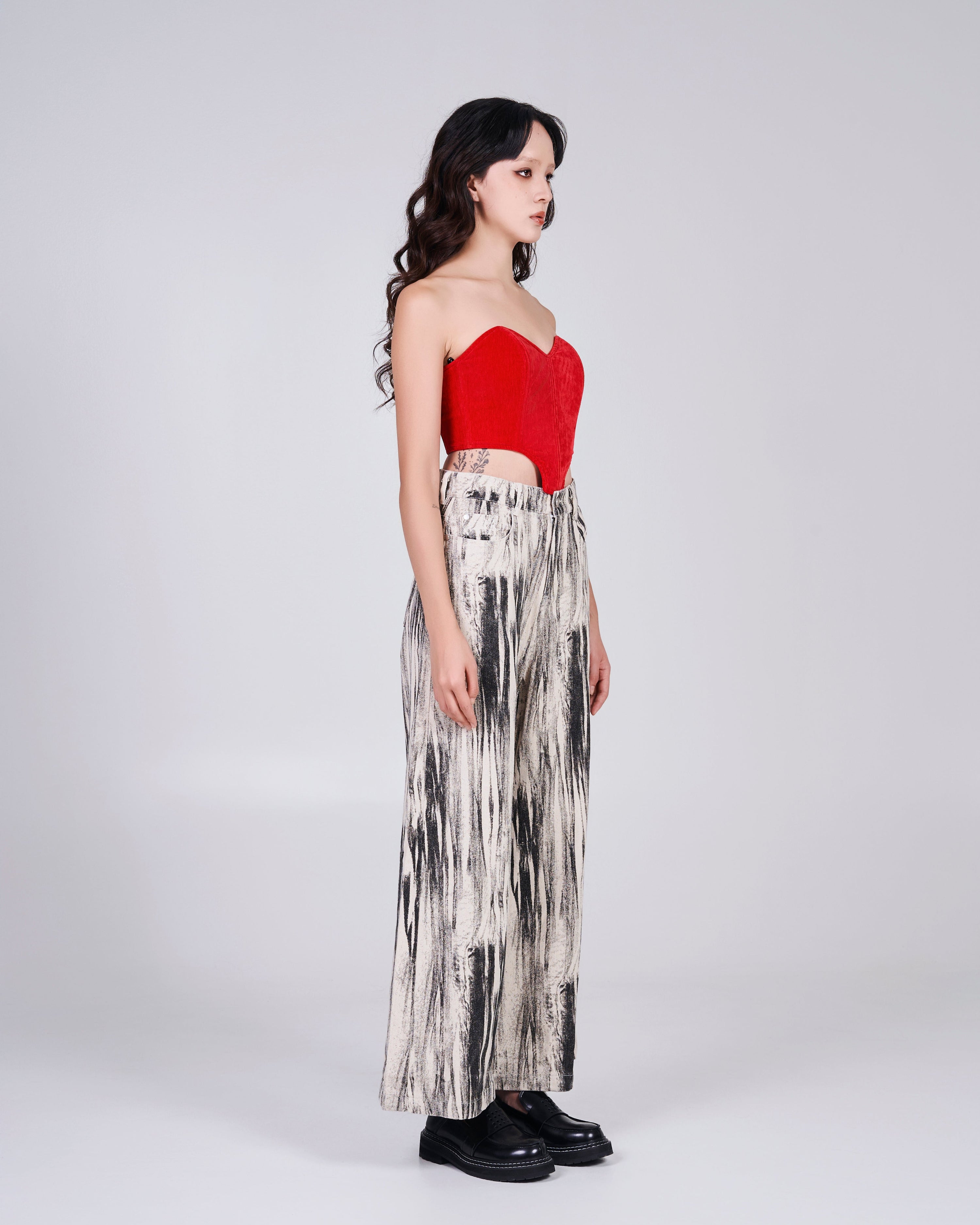 NOIZ N4LP3 Logo Distorted Print Wide-Leg Denim Pants